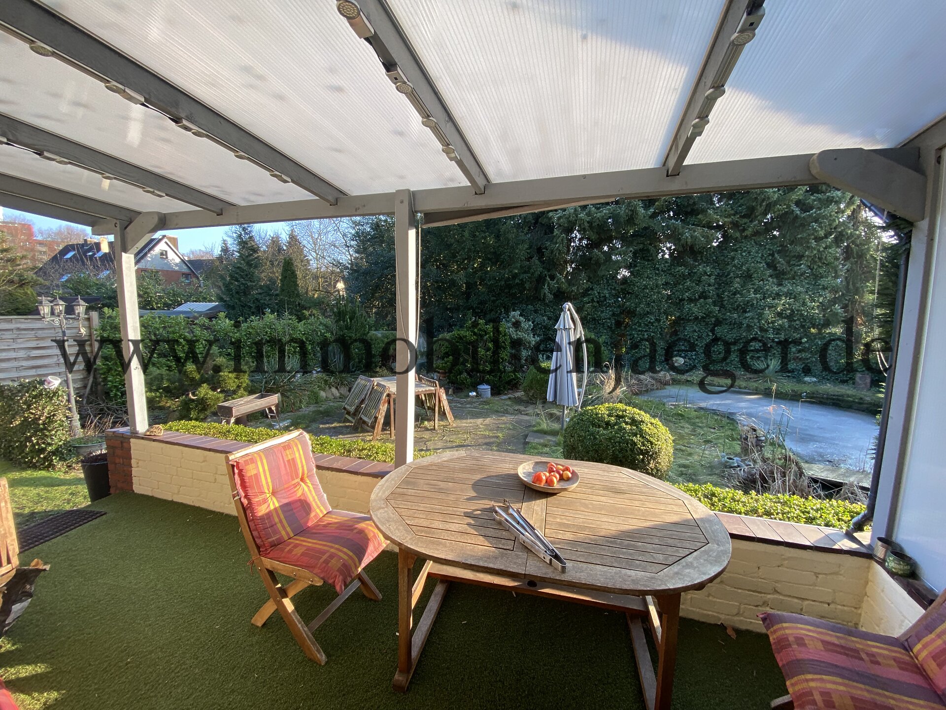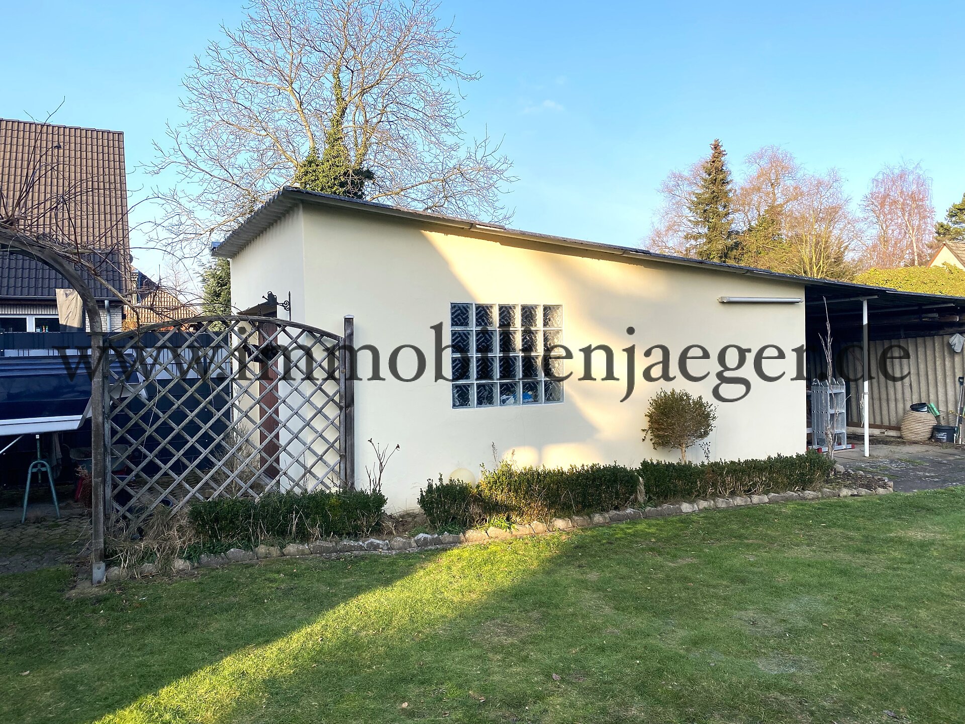 | Objekt | Charaktervolles Einfamilienhaus mit späterem Anbau, gelegen in einer ruhigen Anliegerstraße (Sackgasse) innerhalb einer gewachsenen Wohnsiedlung mit überwiegend Einfamilienhäusern. Die unmittelbare Lage zeichnet sich durch ihre geringe Verkehrsbelastung sowie ein angenehmes, familienfreundliches Wohnumfeld aus. Die umliegende Bebauung ist geprägt von Einfamilienhäusern mit großen Gärten, was zu einer ruhigen und aufgelockerten Nachbarschaft beiträgt. Allgemein: - Eingeschossiges Einfamilienhaus aus dem Baujahr 1954 - Anbau aus dem Baujahr 1964 - Vollunterkellert - Dachgeschoss mit Spitzboden - Idyllisches Grundstück ca. 552 m² - Gas-Zentralheizung inkl. Warmwasserzubereitung Baujahr 1989 - Energieausweis: Bedar 358,8 kWh(m²*a) Klasse H - Maße: - Gesamt Wohnfläche ca. 141,89 m² - Erdgeschoss ca. 83,29 m² - Dachgeschoss ca. 53,13 m² zzgl. Spitzboden als Ausbaureserve - Kellergeschoss - Nutzfläche ca. 66,25 m² - Beschreibung Erdgeschoss: - Vorflur mit getrenntem Zugang zu den Ebenen - Diele - Gäste-WC - 3x Durchgangszimmer mit einem gemütlichen Kaminofen - Gesamtfläche ca. 45 m² - Terrasse Gesamt ca. 10,48 m² mit Blick auf einen angelegten Zierteich - Landhaus-Einbauküche ca. 12 m² - Fußbodenheizung - modernes Vollbad mit Dusche und Badewanne ca. 11,33 m² - Fußbodenheizung - Kellerzugang - Beschreibung Dachgeschoss: - zurzeit Einliegerwohnung - Durchgangszimmer ca. 16,19 m² - Schlafzimmer ca. 20,71 m² - Duschbad ca. 3,55 m² - Küchenbereich ca. 10,60 m² - Beschreibung Dach inkl. Spitzboden - Erneuerung der Dachisolierung - Neue Dacheindeckung Pfanne von 2019 - Beschreibung Keller: - 2x Keller/ Lagerräume - Hauswirtschaftsraum - Heizungsraum mit Gas-Zentralheizung - Sauna mit extra Duschraum - Hobbyraum/Ruheraum mit Gartenzugang - Beschreibung Garten: - großer Hintergarten mit Obstbäumen ca. 350 m² - Regenwassernutzung - zurzeit Nutzung eines zusätzlichen Seitengarten mit Zierteich und Terrasse - Beschreibung PKW-Stellplätze: - Einfahrt mit großem gepflastertem Vorplatz für mehrere Stellplätze - Garage mit überdachen Lagerraum - Ferngesteuertes Grundstückstor |